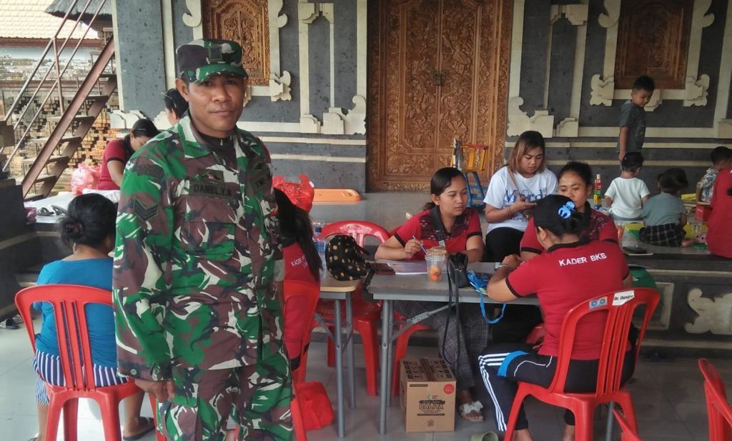 DENPASAR – Babinsa Koramil 1611-01/Dentim Kodim 1611/Badung Serka Daniel Yunias mendampingi pelaksanaan kegiatan Posyandu terpadu balita dan lansia oleh Kader Posyandu bertempat di Balai Banjar Gunung Desa Peguyangan Kaja Kec Denpasar utara Kota Denpasar, Rabu (18/10/23).