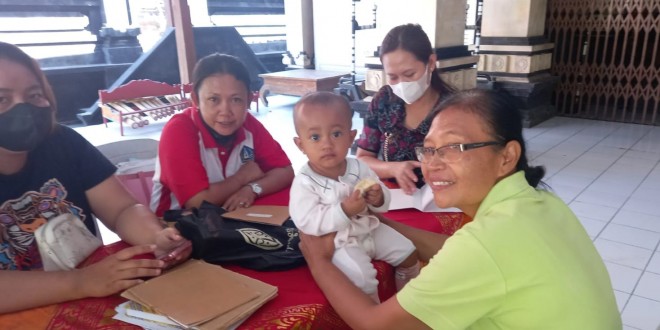 BADUNG – Babinsa Koramil 1611-03/Kuta Serka Gusti P.Sakra melaksanakan pendampingan terhadap petugas kesehatan dalam melaksanakan kegiatan Posyandu Balita dan Pengecekan kesehatan kepada para Lansia dihadiri sekitar 50 orang bertempat di Balai Banjar Lingkungan Pesalakan kelurahan Tuban Jl. Raya Tuban Kec. Kuta Kab.Badung. Rabu (07/12/22).