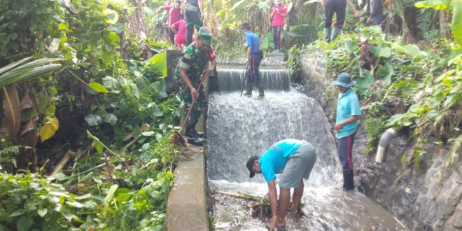 Badung – Babinsa Koramil 1611-04/Mengwi Serka Putra Antara bersinergi dengan Bhabinkamtibmas Bersama masyarakat melaksanakan pembersihan aliran sungai dan penebaran benih ikan di desa buduk Kec. Mengwi, Kab. Badung. Sabtu (28/05/22).