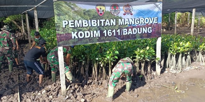 Kegiatan pembibitan Manggrove Kodim 1611/Badung terdapat 5000 batang yang siap tanam dan 2000 batang pembibitan dalam rangka persiapan pelaksanaan penanaman manggrove untuk mendukung program Pangdam IX/UDY nantinya mangrove ditanam di sekitar lokasi bibir pantai dengan harapan menjaga kelestarian lingkungan hidup dan mengurangi pemanasan global serta menjaga ekosistem perairan.