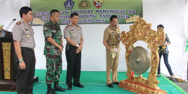 IMG_2911Pada hari Rabu tanggal 24 Juni 2015 pukul 09.00 wita bertempat di Polres Badung dilaksanakan pencanangan TNI – Polri Manunggal Keluarga Berencana TA. 2015. Hadir pada acara tersebut Bupati Badung, Dandim 1611/Badung, Kapolres Badung, Wakapolresta Denpasar, Ibu Ketua PKK Kabupaten Badung, Ketua Persit Cabang XXXIV Kodim 1611/Badung, Ibu Ketua Bhayangkara Polres Badung, SKPD Kabupaten Badung, Camat, Anggota Kodim 1611/Badung, Anggota Polres Badung, Aseptor KB jumlah 500 orang. Dilanjutkan kegiatan pemasangan alat kontrasepsi KB dalam pengobatan massal.
