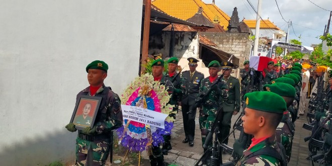 Denpasar – Prosesi pemakaman militer merupakan perwujudan dari penghormatan terakhir dan sudah menjadi tradisi yang dilakukan untuk menghormati arwah para pahlawan maupun anggota TNI yang telah mengabdikan dirinya bagi bangsa dan negara, Dandim 1611/Badung Kolonel Inf. Dody Triyo Hadi S. Sos. M. Si memimpin pelaksanakan upacara pemberangkatan maupun perabuan Jenazah Almarhum Mayjen TNI (Purn) I Ketut Wirdana,S.Sospol bertempat di Kediaman almarhum Mayjend TNI (Purn) I Ketut Wirdana jalan Raya Sesetan Gg.Kenanga No.9 Kel.Sesetan Kec.Densel Kota Denpasar. Kamis (30/06/22).