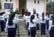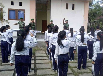 Babinsa Ds Padangsambian Kaja Koramil 1611-07/Denbar memberikan materi PBB( Peraturan Baris Berbaris ) kepada siswa pelajar SMK Farmasi pada hari Minggu  tanggal 18 Januari  2015 di sekolah SMK Farmasi Ds Padangsambian Kaja dalam rangka memberikan wawasan pentingnya Bela Negara hadir  350 orang