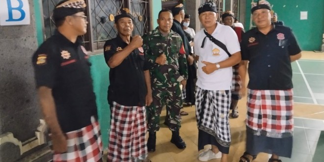 BADUNG – Dalam rangka kegiatan lanjutan musyawarah mufakat terkait pemilihan Kelian Adat ( Bendesa ) Desa Ungasan untuk Periode 2023 – 2029, Babinsa Desa Ungasan Sertu Komang Arba Jaya dan Sertu Azis M bersinergi dengan Bhabinkamtibmas, Linmas dan Pecalang memantau jalannya Musyawarah Mufakat bertempat di Wantilan Dirga Laba Desa Ungasan Jl. Merak Bjr. Kangin Desa Ungasan Kec. Kuta Selatan Kab. Badung, Senin (03/07/2023).
