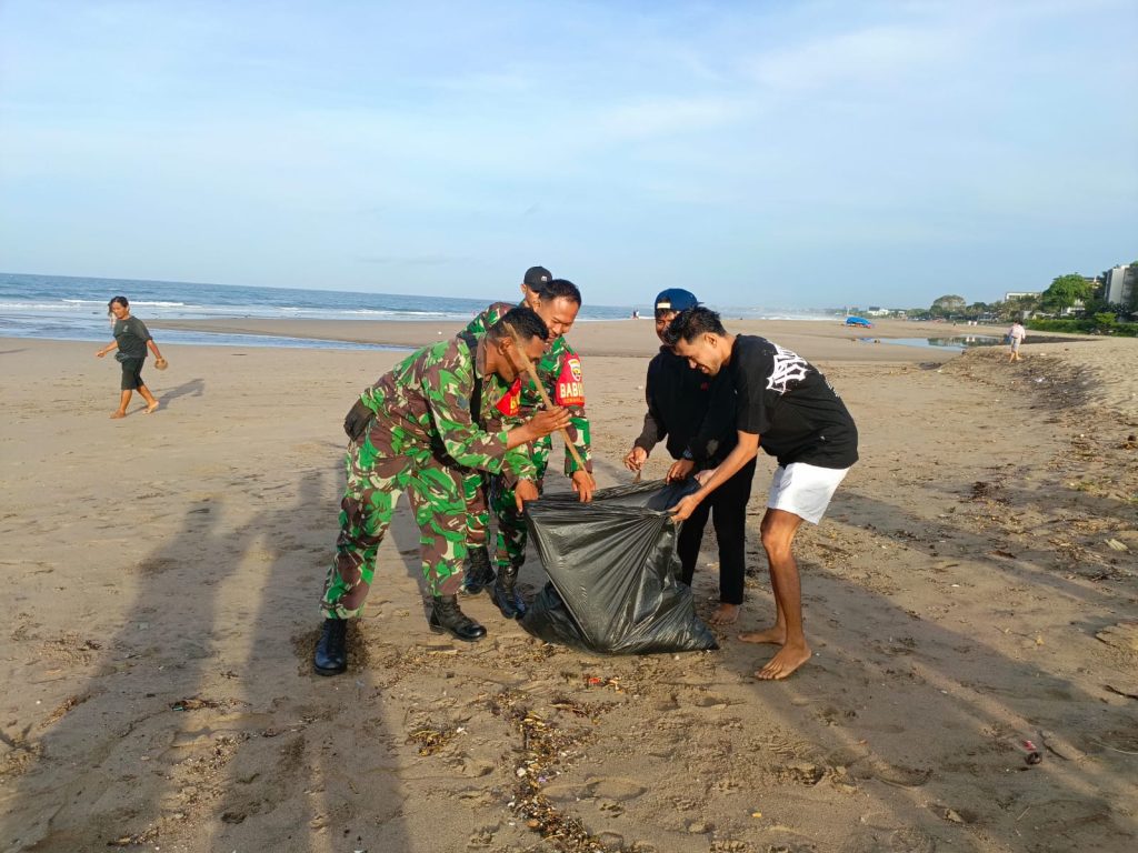 Pada pelaksanaan peduli lingkungan serentak dipimpin langsung oleh Danramil 1611-03/Kuta bertempat dipantai Petitenget kelurahan Kerobokan Kelod Kecamatan Kuta Utara Kabupaten Badung’ Jum’at (12/01/24).