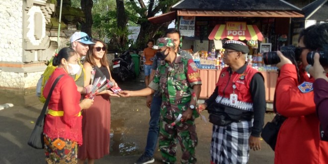 Lanjut Babinsa, dalam pelaksanaannya kegiatan ini dilakukan dengan membagikan bunga mawar dan sticker kepada warga negara Asing di Kawasan pantai Matahari terbit Sanur yang akan menyebrang ke Nusa Penida dan Nusa Lembongan