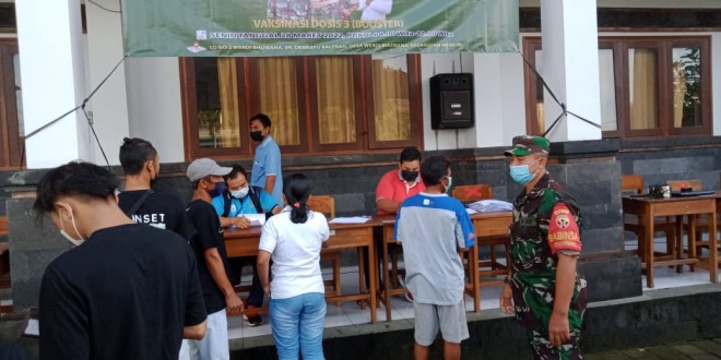 Pada kesempatan itu Danramil 1611-04/Mengwi Mayor Inf. Muhamat Sutopo mengatakan “Kegiatan vaksinasi tahap 3 Booster dilaksanakan oleh Pihak  Kodim 1611/Badung  dalam rangka mensukseskan program vaksinasi  Covid-19 guna mencegah penyebaran Covid-19 di wilayah Kabupaten Badung serta di peruntukkan kepada masyarakat yang belum di Vaksin untuk meningkatkan Imun dan daya tahan tubuh’’. Ucap Danramil
