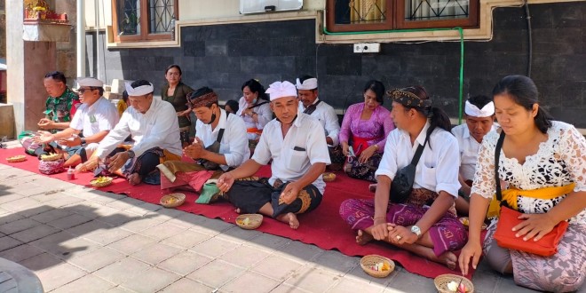DENPASAR – Babinsa Koramil 1611-01/Dentim Peltu Made Arka menghadiri serta mengikuti Persembahyangan bersama Staf Dan Perangkat ASN Kelurahan Peguyangan Hari Raya Suci Tumpek Kandang Saniscara Uye yang dipimpin oleh Bpk.Lurah peguyangan I Gede Sudi Arcana,S.sn. Msi di Pura Padmasana Jl. A. Yani Gang Sapta darma No.5 Kelurahan Peguyangan Kec.Denut Kota Denpasar. Sabtu (Sabtu 27/08/22).