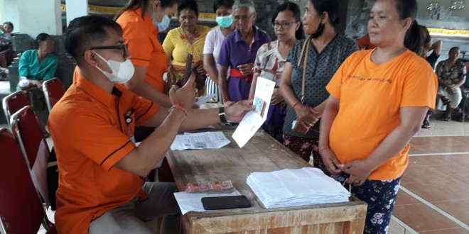 BADUNG – Babinsa Koramil 1611-05/Abs Serka Nyoman Anom bersama Bhabinkamtibmas memantau penyaluran BLT BBM  dari   Petugas Kantor Pos Indonesia cab. Renon Kepada masyarakat Desa Bongkasa bertempat di Wantilan  Desa Adat Bongkasa, Desa Bongkasa  ,Kec. Abiansemal, Kab. Badung. Kamis (08/09/22).