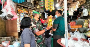 Babinsa 1611-01/Dentim Pantau Kegiatan Kebutuhan Pokok dan Harga Serta Bagi Masker di Pasar