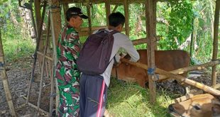 BADUNG – Babinsa Desa Mengwi Koramil 1611-04/Mengwi Serma Wayan Budu=iastra bersama Bhabinkamtibmas mendampingi pelaksanaan vaksin Penyakit Mulut dan Kuku (PMK). Pelaksanaan Kegiatan Vaksin PMK ke 4 pada hewan ternak (sapi) milik warga dilakukan oleh Dinas Pertanian dan Pangan Kab. Badung dan bertempat di Desa Mengwi Kec Mengwi Kab. Badung. Senin …