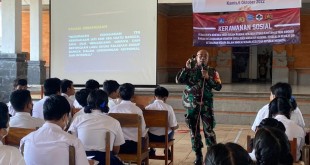 BADUNG – Guna membina generasi muda Babinsa Koramil 1611-08/Kutsel Pelda Johanis melaksanakan Komsos dengan memberikan pembinaan pengendalian kerawanan social kepada siswa-siswi yang diikuti sekitar 70 orang bertempat di Aula SMP 2 Kutsel. Banjar Kauh, Desa Ungasan Kec. Kuta Selatan Kab.Badung. Selasa (18/10/22). Pelda Johanis mengatakan kegiatan dilaksanakan untuk memiberikan pembinaan …