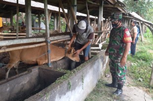 BADUNG – Babinsa Koramil 1611-04/Mengwi Serka Rokim mendampingi petugas dari Dinas Peternakan Kabupaten Badung memberikan suntikan vaksin kepada ternak milik warga di wilayah Kel Lukluk Kecamatan Mengwi Kab. Badung. Senin (22/08/22). Kegiatan ini dilakukan sebagai upaya mencegah penyebaran penyakit mulut dan kuku (PMK) yang menyerang ternak warga. Serka Rokim menghimbau …