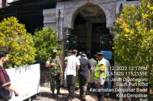 DENPASAR – Babinsa Koramil 1611-07/Denbar Serda Banmbang Purwito bersama Bhabinkamtibmas melakukan Pemberlakuan Pembatsan Kegiatan Masyarakat (PPKM) level II terhadap warga masyarakat yang sedang melaksanaan Sholat Jum’at berjamaah di Masjid AN NUR Jl. Diponegoro Banjar Sanglah Timur Ds.Dauh Puri Kelod Kec Denbar Kota Denpasar. Jum’at (12/08/22). Saat pelaksanaan PPKM level II …
