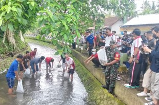 Pelestarian Lingkungan Babinsa Kodim 1611/Badung Hadiri serta Pantau Tebar Bibit Ikan