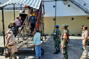 Sinegritas Babinsa Koramil 1611-02/Densel dengan Instansi Terkait Pantau Kedatangan KM. Tilongkambila Eta