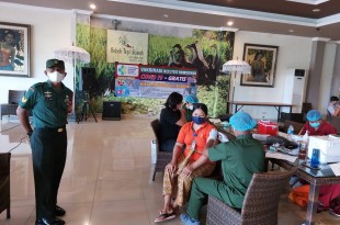Badung – Sebagai upaya memutus rantai penyebaran Covid-19 serta mendukung program Pemerintah Pusat, Kodim 1611/Badung bekerjasama dengan Tim Nakes RSAD/Udayana penangung jawab Drg. Lia Noviana M.M, melaksanakan kegiatan vaksinasi ke 3 (Booster) Covid-19, di wilayah Koramil 1611-03/Kuta Bertempat di Lantai II Bebek Tepi Sawah Restaurant Krisna oleh-oleh Jl. Raya Tuban …