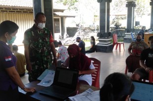 Badung – Dalam rangka mendukung Kegiatan Vaksinasi Covid 19 dan memutus penularan Covid-19, Babinsa Koramil 1611-04/Mengwi Peltu I Gusti Suprapto melaksanakan pemantauan kepada warganya dalam vaksinasi tahap 3 Boster golongan usia 18 tahun ke atas yang di selenggarakan Puskesmas mengwi II Badung yang bertempat di bale banjar Gunung pande desa …