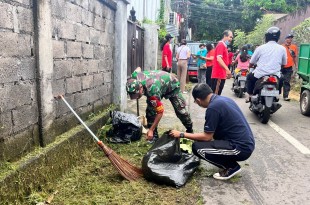 Jaga Kebersihan Lingkungan Babinsa Kodim 1611/Badung bersama warga Laksanakan Kerja Bakti