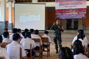 BADUNG – Guna membina generasi muda Babinsa Koramil 1611-08/Kutsel Pelda Johanis melaksanakan Komsos dengan memberikan pembinaan pengendalian kerawanan social kepada siswa-siswi yang diikuti sekitar 70 orang bertempat di Aula SMP 2 Kutsel. Banjar Kauh, Desa Ungasan Kec. Kuta Selatan Kab.Badung. Selasa (18/10/22). Pelda Johanis mengatakan kegiatan dilaksanakan untuk memiberikan pembinaan …