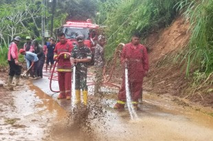 BADUNG – Untuk melancarkan arus lalulintas Koramil Koramil 1611-06/Petang yang dipimpin langsung Danramil 1611-06/Petang Kapten Inf Nyoman Suarka bersama warga dan aparat terkait melaksanakan pembersihan bahu jalan pasca longsor di Banjar Pundung Desa Pangsan Kec.Petang Kab. Badung. Selasa (18/10/22) Pembersihan lumpur dan batu bekas longsor yang menghalangi bahu jalan dilakukan …