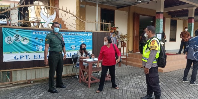 Badung – Babinsa Koramil 1611-03/Kuta Sertu Reinold BA bersama Bhabinkamtibmas memantau kegiatan Anniversary pernikahan ke 50 th Pendeta Tomo Darmo Suwondo. M.Th dengan ibu Maria Matelda YP yang bertempat di Gereja Pantaikosta Tabernakel (GPT) EL- SHADDAI, alamat Jln. Taman Sari Madu No. 9X, Br. Pengubengan Kangin, Kel. Kerobokan Kelod, Kec. Kuta Utara, Kab. Badung. Rabu(04/05/22)