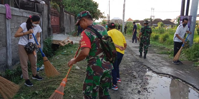 Denpasar – Babinsa Koramil 1611-02/Densel Serka Yudi Pramono bersinegritas dengan Bhabinkamtibmas, Senkom dan Personil Jasdam IX/Udy beserta warga melaksanakan gotong royong pembersihan di sepanjang Jl Tukad Badung XIII, Kel Renon Kec.Denpasar Selatan Kota Denpasar. Jum’at (01/07/22).