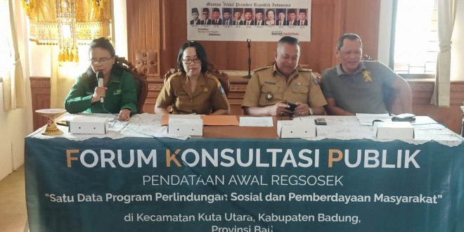 Sambutan dari Ida Ayu Made Adyani, S.E. selaku Fungsional Statistisi Muda BPS (Badan Pusat Statistik) Kab. Badung, menyampaikan pada intinya bahwa datang dalam kegiatan Forum Konsultasi Publik (FKP) dalam rangka Pendataan Awal Regestrasi Sosial Ekonomi (Regsosek) 2022, sekaligus memperkenalkan timnya, ucapnya.