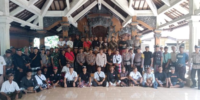 DENPASAR – Babinsa Koramil 1611-07/Denbar Pelda Gede Ribek bersama Bhabinkamtibmas memantau serta mengamankan kegiatan deklarasi pemilu damai.