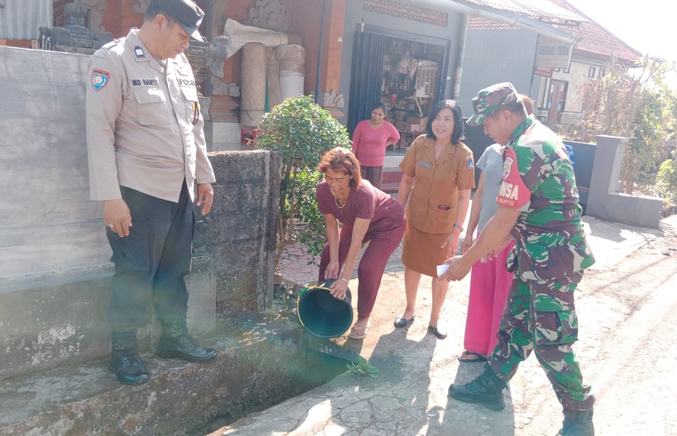 Babinsa bersama Bhabinkamtibmas dan PKK dikutip dari warga dalam penyampaiannya memberikan himbauan dan pembinaan terkait dengan pengelolaan sampah dan melakukan pemilahan sampah di Rumah tangga, pengelolaan limbah cair dan tidak membuang limbah ke Drainase di lingkungan.