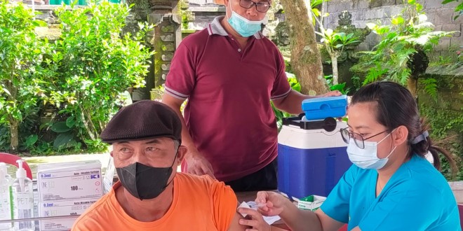 Sukseskan Vaksinasi Babinsa Kodim 1611/Badung Dampingi Tenaga Kesehatan