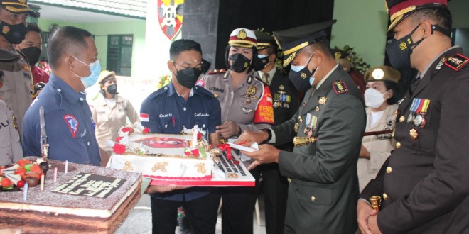 “Hari jadi HUT TNI yang ke 76 ini merupakan momen yang sangat besar, dengan tema “Bersatu Berjuang Kita Pasti Menang” artinya dalam tema ini sinergitas serta silaturahmi kami tetap solid, baik dengan Polri dan masyarakat adalah untuk negeri yang kita cintai ini.”ucap Dandim.