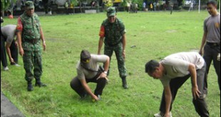 Pada hari jumat tanggal 30 januari 2015 pkl 07.00 wita anggota koramil melaksanakan jumat bersih (pembersihan rumput dan sampah plastik) sekitar lapangan arga soka kel sesetan densel bersama anggota polsek densel. Selesai pkl 10.30 wita