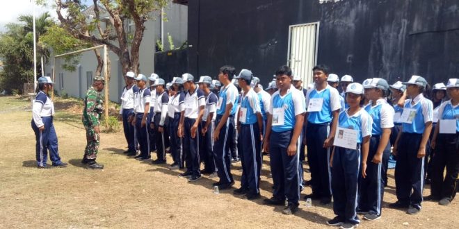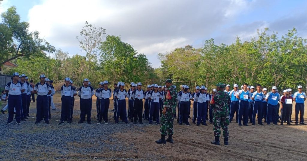 BADUNG – Babinsa Koramil 1611-08/Kuta Selatan Pelda Johanis dan Serma Wayan Menih melakukan perhatian dalam pembinaan generasi muda dengan memberikan memberikan Latihan Dasar Kepemimpinan (LDK) kepada Siswa-siswi SMKN I dan SMKN 2 Kuta Selatan.