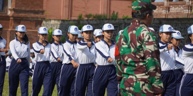 Badung – Personil Babinsa Koramil 1611-05/Abiansemal memberikan pelatihan dasar Peraturan Baris Berbaris (PBB) kepada Siswa-siswi SMAN 2 Abiansemal bertempat di lapangan SMAN 2 Abiansemal Kec. Abiansemal Kab Badung. Jum’at (20/05/22).