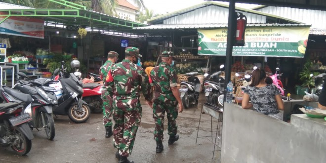 Badung – Upaya memutus mata rantai penularan Covid-19 merupakan tugas dan tanggung jawab semua pihak, Babinsa Koramil 1611-08/Kuta Selatan melakukan penegakkan disiplin prokes terhadap warga bertempat di Pasar Ampera Jln Raya Ungasan Kec Kuta Selatan Kabupaten Badung Kamis 10/03/2022