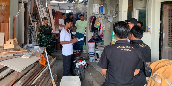 BADUNG – Dalam upaya menjaga stabilitas kenyamanan dan keamanan serta mewujudkan masyarakat yang tertib administrasi, Babinsa Kelurahan Benoa Serda Lalu.Samsul Hakim dan Serda Made Cahya Koramil 1611-08/Kutsel bersinergi dengan Bhabinkamtibmas mendampingi kegiatan Sidak Penduduk Pendatang Non Permanen.