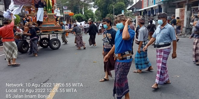 Selain menerapkankan prokes Sertu Ponirin dan Bhabinkamtibmas serta pecalang juga mengatur lalu lintas agar pelaksanaan berjalan dengan lancar.