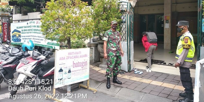 Pemberlakuan Pembatsan Kegiatan Masyarakat (PPKM) level II terhadap warga masyarakat yang sedang melaksanaan Sholat Jum’at berjamaah di Masjid AN NUR Jl. Diponegoro Banjar Sanglah Timur Ds.Dauh Puri Kelod Kec Denbar Kota Denpasar. Jum’at (26/08/22).